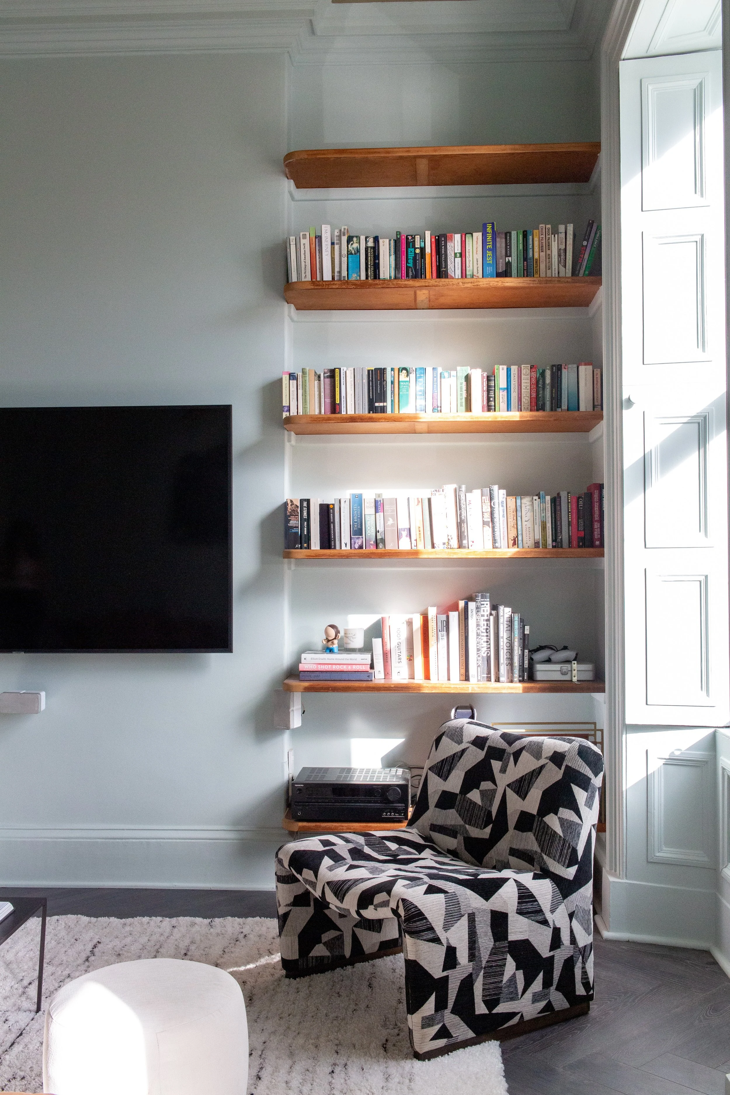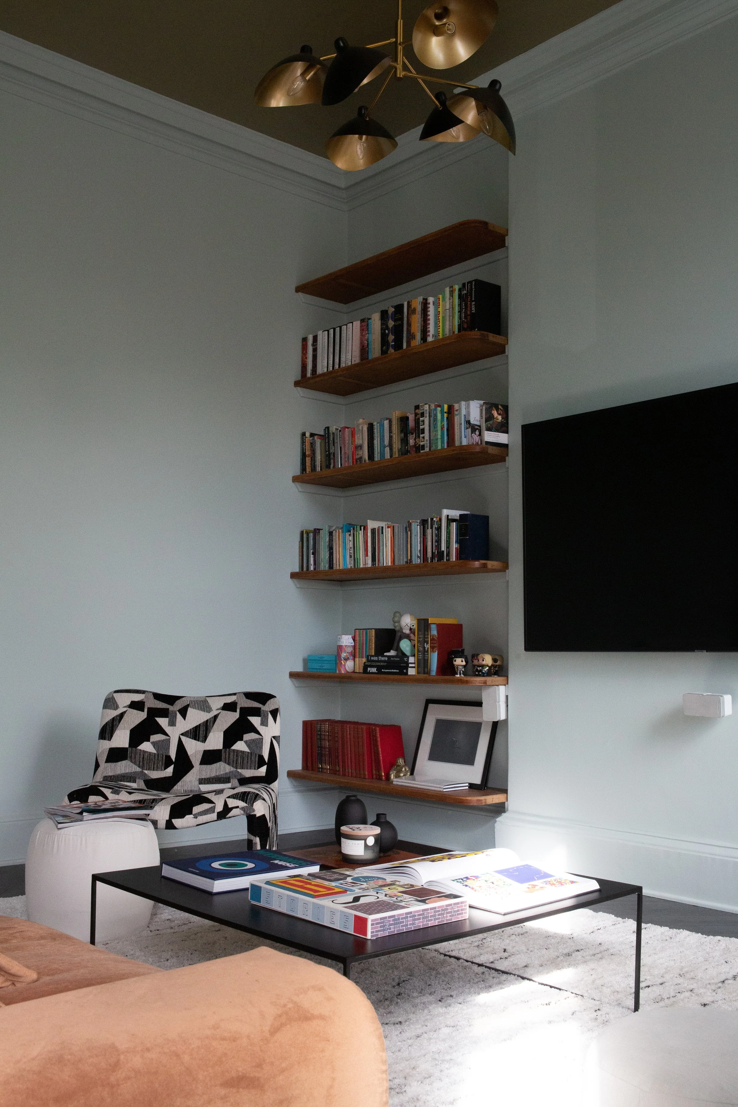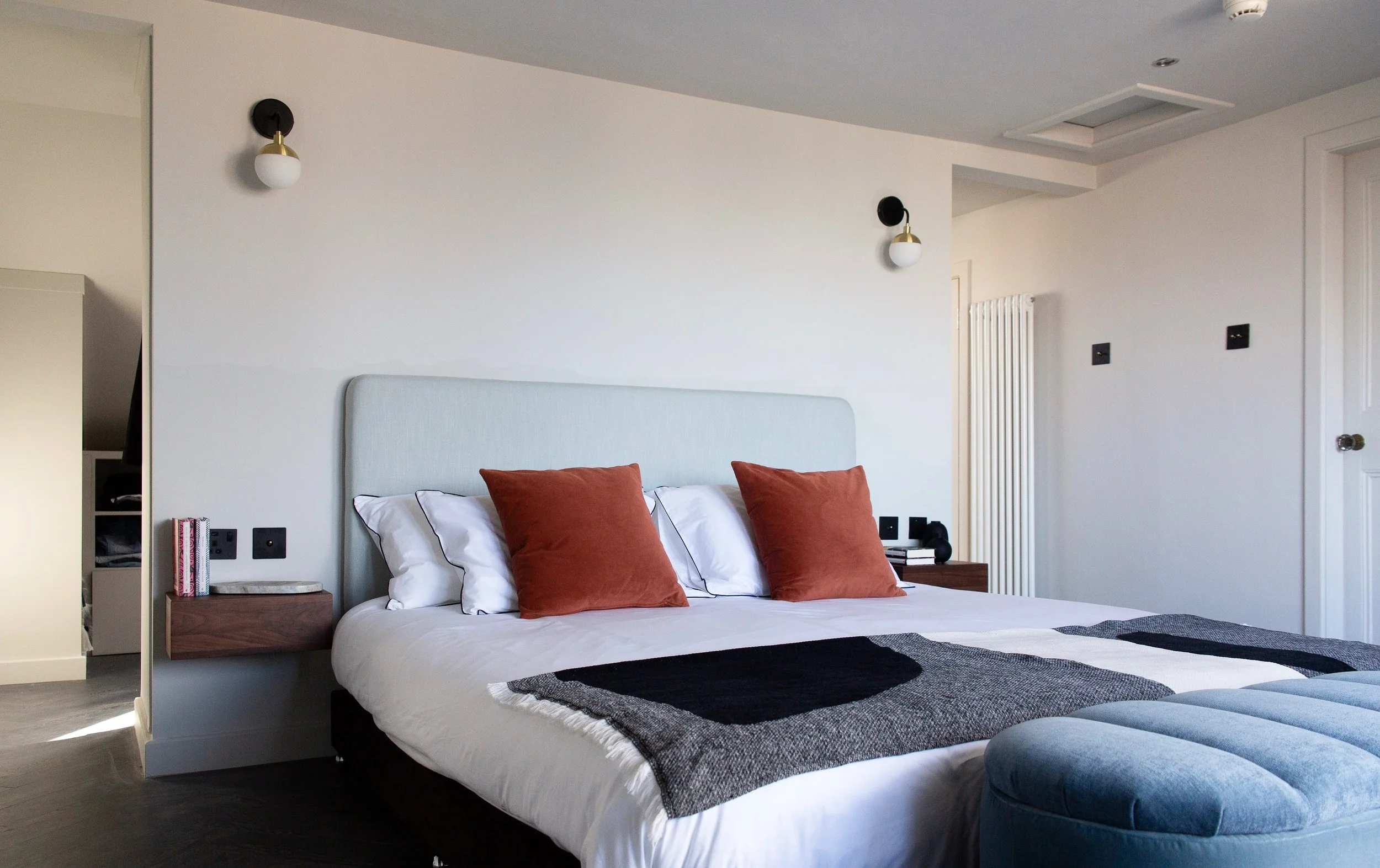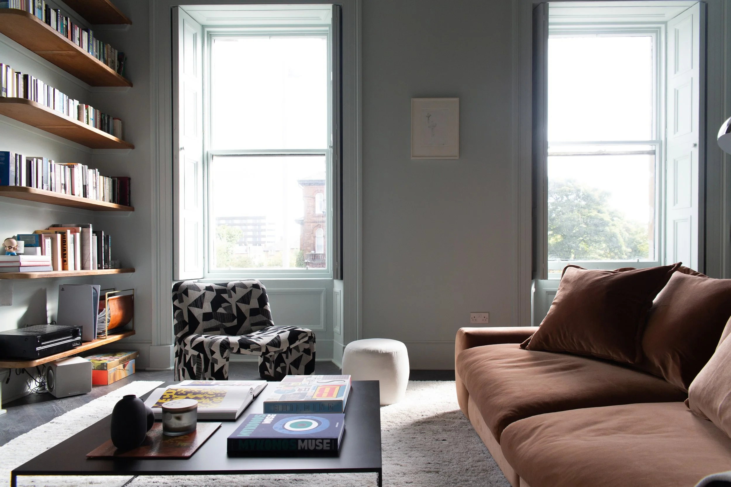A cool eclectic townhouse in Ayr filled with loads of character and personality. This wonderful client wanted to transform their attic space into a master suite with walk in wardrobe and ensuite, along with a redesign of their living room. We created a playful and inspirational space for a very cool couple.